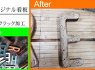 名古屋市内にある店舗様の看板内の文字をエイジング&クラック塗装で